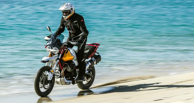 In terms of other basic specs, Moto Guzzi claim a kerb weight of 229kg, this is with the 23l tank 90% full. It is EURO 4 compliant and has a fuel consumption rating of 4.9l/100km giving an effective range of about 460km off a tank. So if you want a touring ADV bike to keep your knees toasty give this interesting Italian a chance.