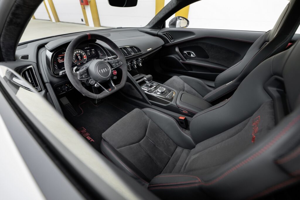 As has been mentioned this is the swansong on the naturally aspirated V10 that has found its spot in both the Lamborghini Hurracan and the R8 and in various states of tune. The free-revving 5.2l unit is capable of producing 456kw(620ps) and 565 N.m. It can rev all the way up to sonorous 8700rpm. It’s also the most powerful RWD version of the R8. That power is sent to the rear wheels via a new 7-speed DCT transmission and Audi claims it can achieve the 0-100 kph dash in 3.4 seconds however I think conditions would have to be perfect to achieve that but 3.6s should be consistently achievable. What does help the GT is the new standard fitment of exclusive lightweight 20″ rims to reduce unsprung mass, they also look pretty cool in my opinion. Options include fitting Michelin Sport Cup 2 tyres for that track day stickiness.